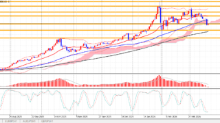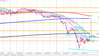 20時12分相場の現在日足はトレンド転換へと移行している。日足の100が効いています。日足の20との乖離があります。1時間足の一番下のレジサポラインは効いている1時間足の一番下のレジサポラインを抜けたらブレイク、エントリー、予約注文済み⑦日...