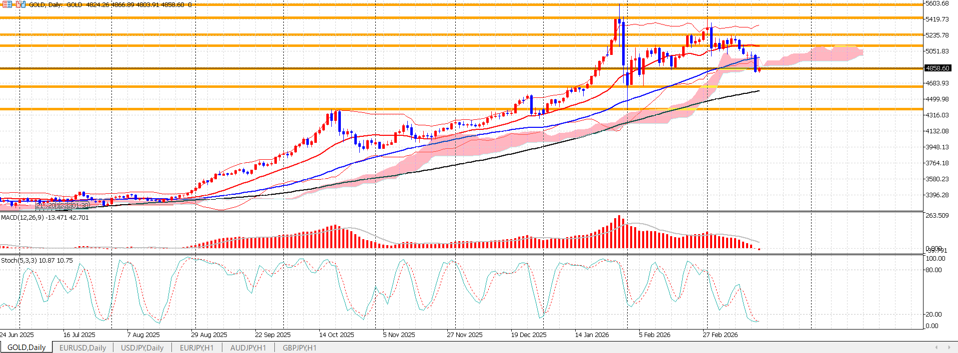 日足SMA50を抜けレジサポライン上にいます。下のゾーンか上のゾーンか。まずは底を見極めないといけません。トレードできる状態にはありません。