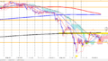 チャートよく見ると、チャネルライン内で大きく三尊形成にも見えてくるし、下から2番目のオレンジラインに小さく逆三尊形成にも見える。