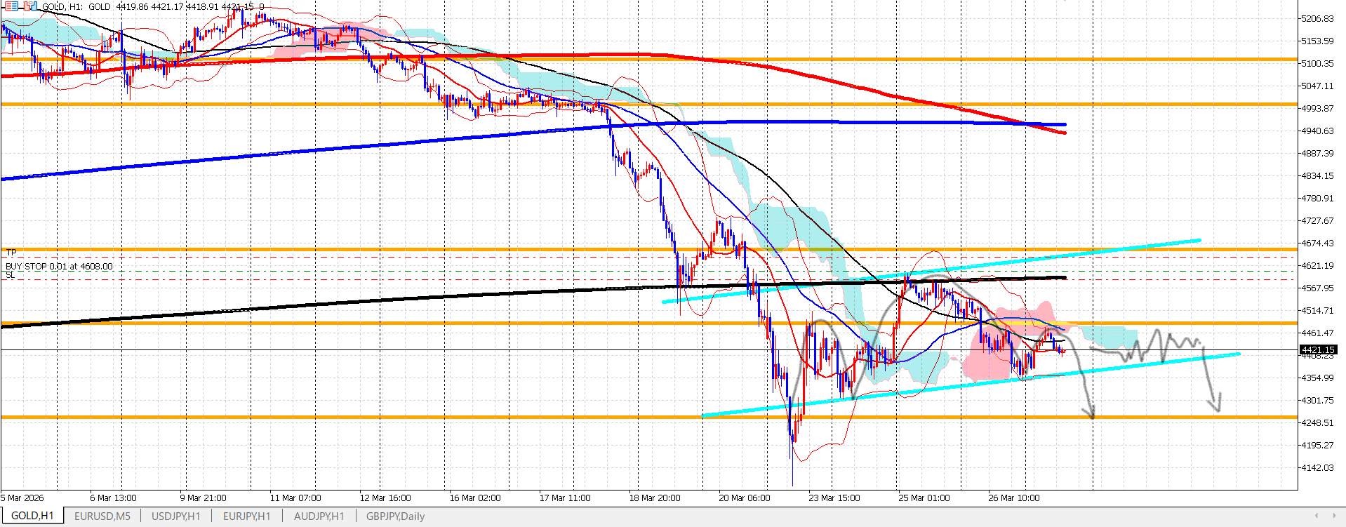 日足はトレンド転換でどう動くかわかりません。1時間足はレンジ。