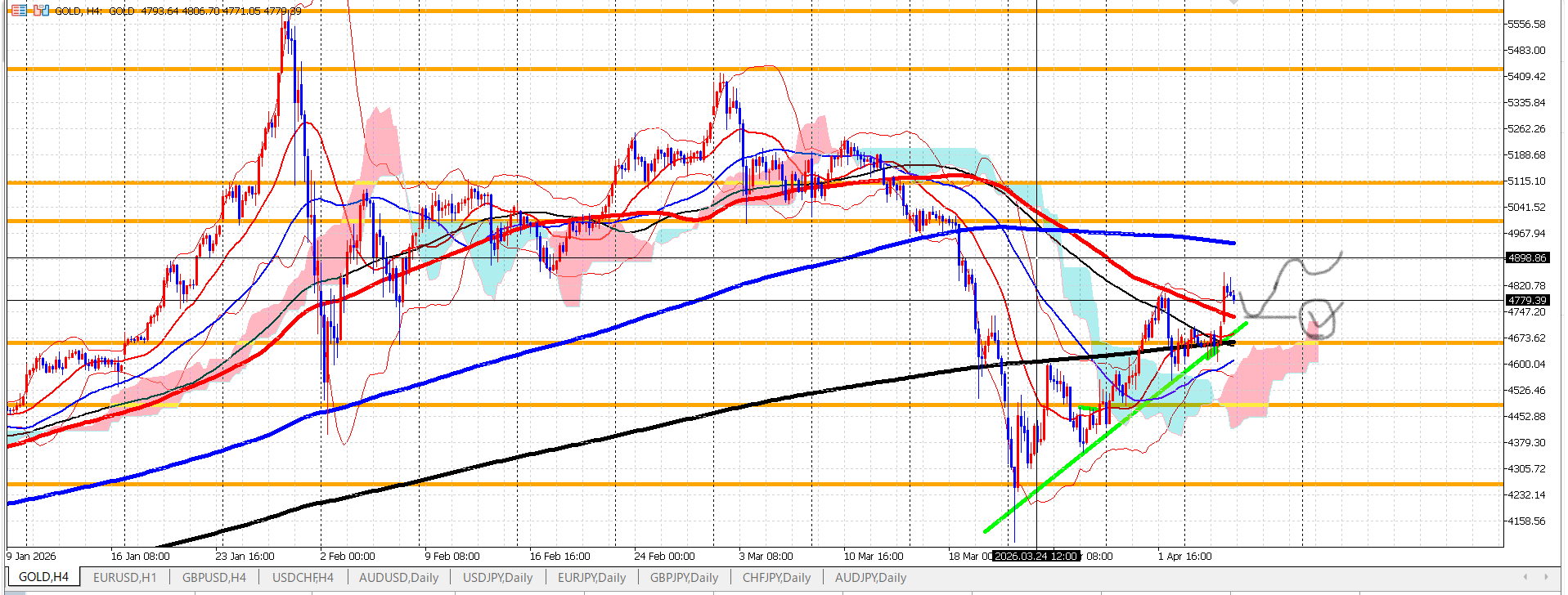 - トレンドライン、日足100、日足20、4時間足100、50、20、たくさんの上昇を支える根拠はあります。