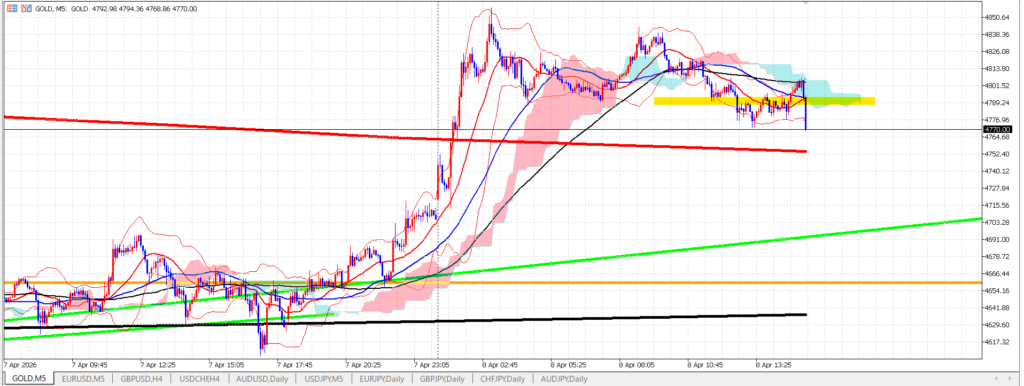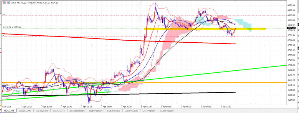 トランプ発言からなのか、いつの間にかブレイクしていました。昨夜から狙いのポイントが複数あったけど、すべてなくなってしまった。ついつい損した気分になるけど、損は一切していない。これでいい。