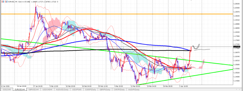 令和8年4月9日木曜日 Uncategorized X Facebook はてブ LINE Pinterest コピー 2026.04.082026.04.09 目次 ゴールドEURUSD ゴールド 狙いはトレンドライン!しっかり待ってトレードしてください。我慢のトレードをしっかりと覚えて、体に叩き込んでください。老後に破産はしたくありません。 チャンスを逃したら、また、次のチャンスを狙えばよい。気にしない。お金儲けは二の次です。 それでは次のチャンスまでさようなら。 EURUSD 日足100、50を抜けて上昇。押し目をつけたところでエントリーしていきたい。 押し目をつけていないがエントリーしてしまった。 マイナス50pips