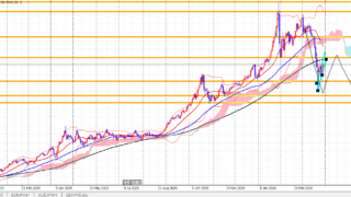 経済指標23時30分にパウエル議長声明イラン情勢混乱ゴールド日足、上昇トレンドから高値更新できずに急落。その後の調整局面でまだまだ下落するか。日足100を超えるかどうかがポイントです。抑えられたら安値更新できるかどうか、100で押さえられて...